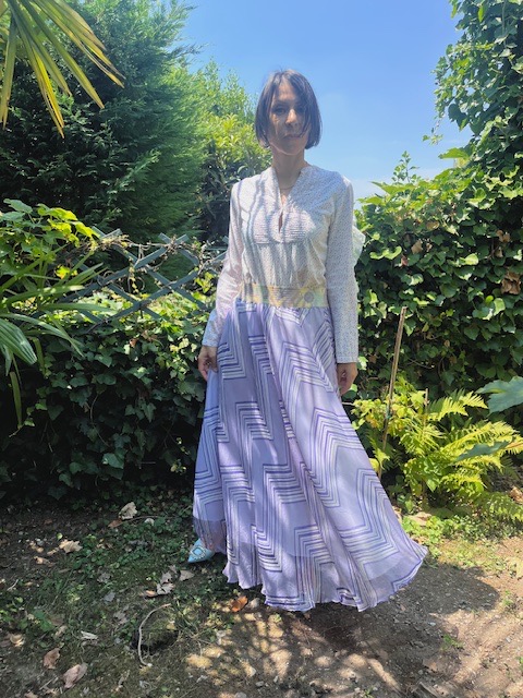 Camicia realizzata sartoriale in seta fantasia multicolore, modello top, molto variopinta per ricordare la carta del Matto dei Tarocchi