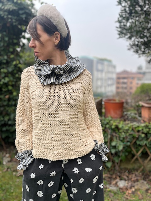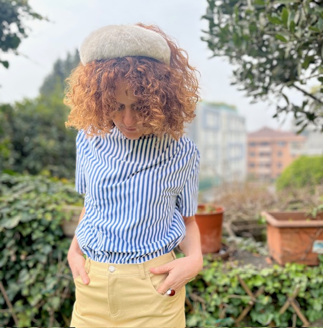 Cerchietto in ecopelliccia colore beige.