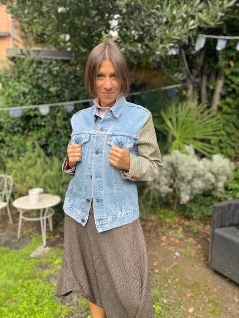 Ho così reinterpretato un gilet taglio maschile Levi’s vintage cucendo delle maniche tartan di una giacca