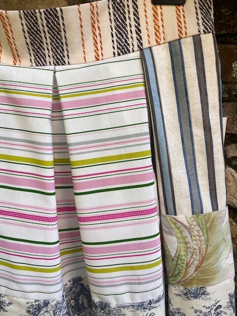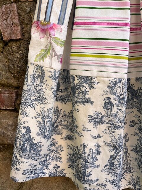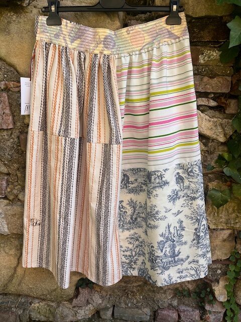 gonna realizzata sartoriale in cotone fantasia floreale e toile de jouy, modello con pieghe davanti e tasche laterali, dietro con elastico