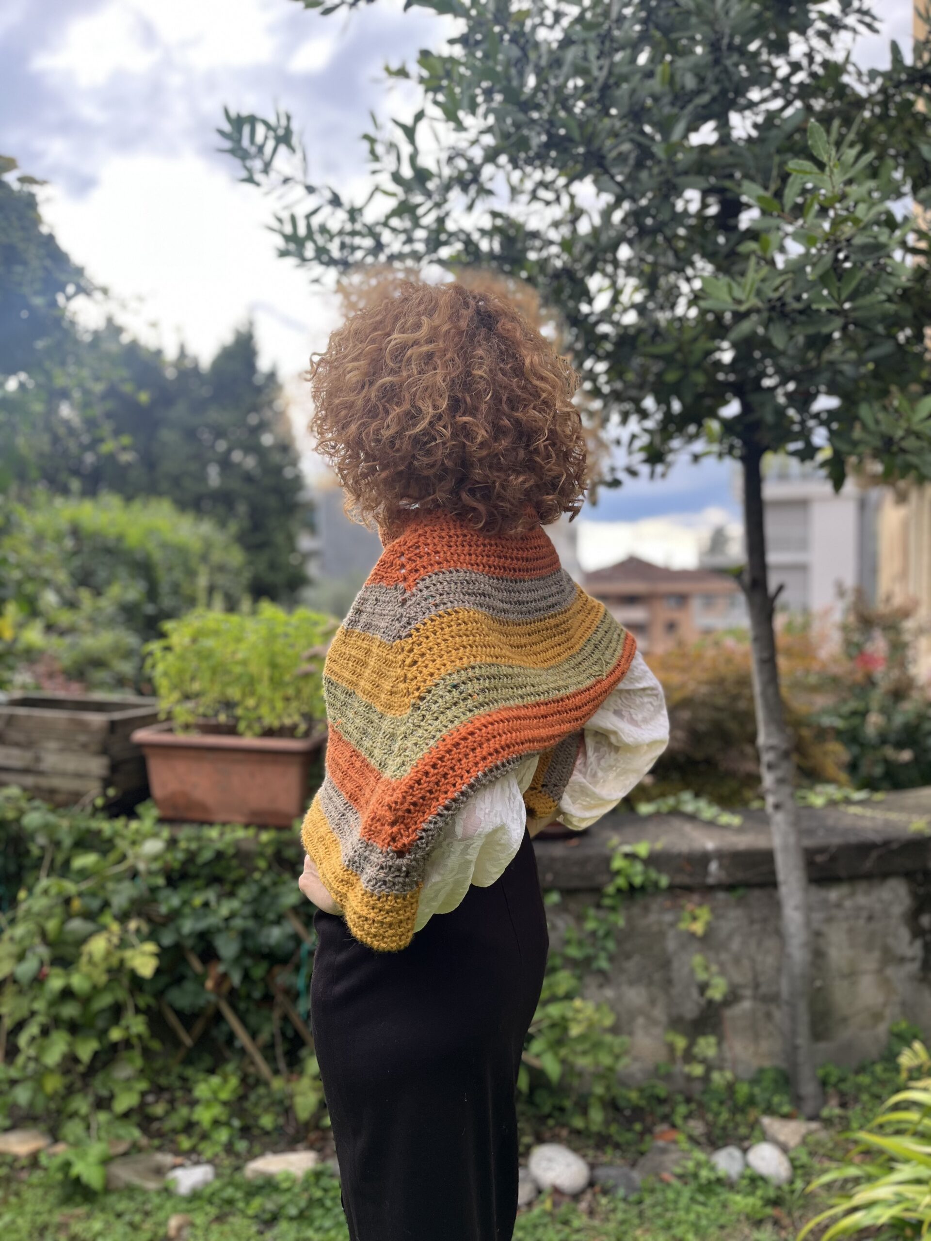 Mantella realizzata crochet ad uncinetto in lana colori autunnali